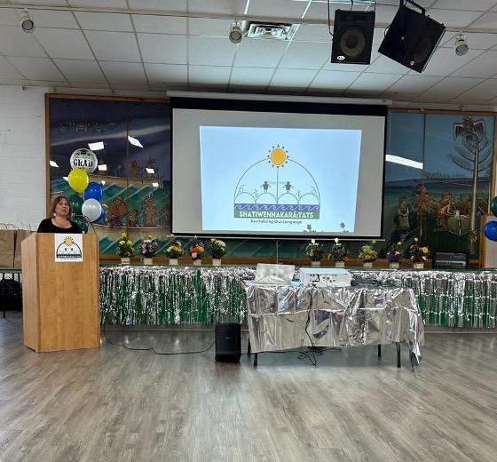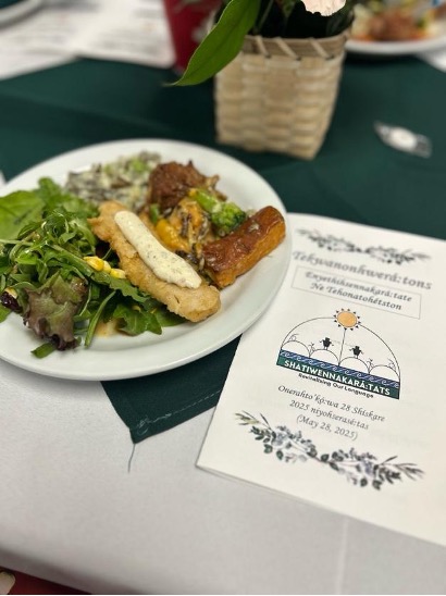 The day concluded with TTO’s Shatiwennakará:tats Adult Immersion Graduation at the Community Centre. The celebration honoured ten (10) recent graduates of the Kanyen’kehà:ka language program with enough fluency to teach the adult immersion program. Families, educators, leaders, and community members shared in the excitement, enjoying a delicious feast and the warmth of community connection. A recent highlight of the program’s success is that two of the graduates have already stepped into new roles, as the teacher and teaching assistant for the very program they completed. This is an inspiring reflection of how the program is nurturing the next generation of language leaders and strengthening community capacity from within.